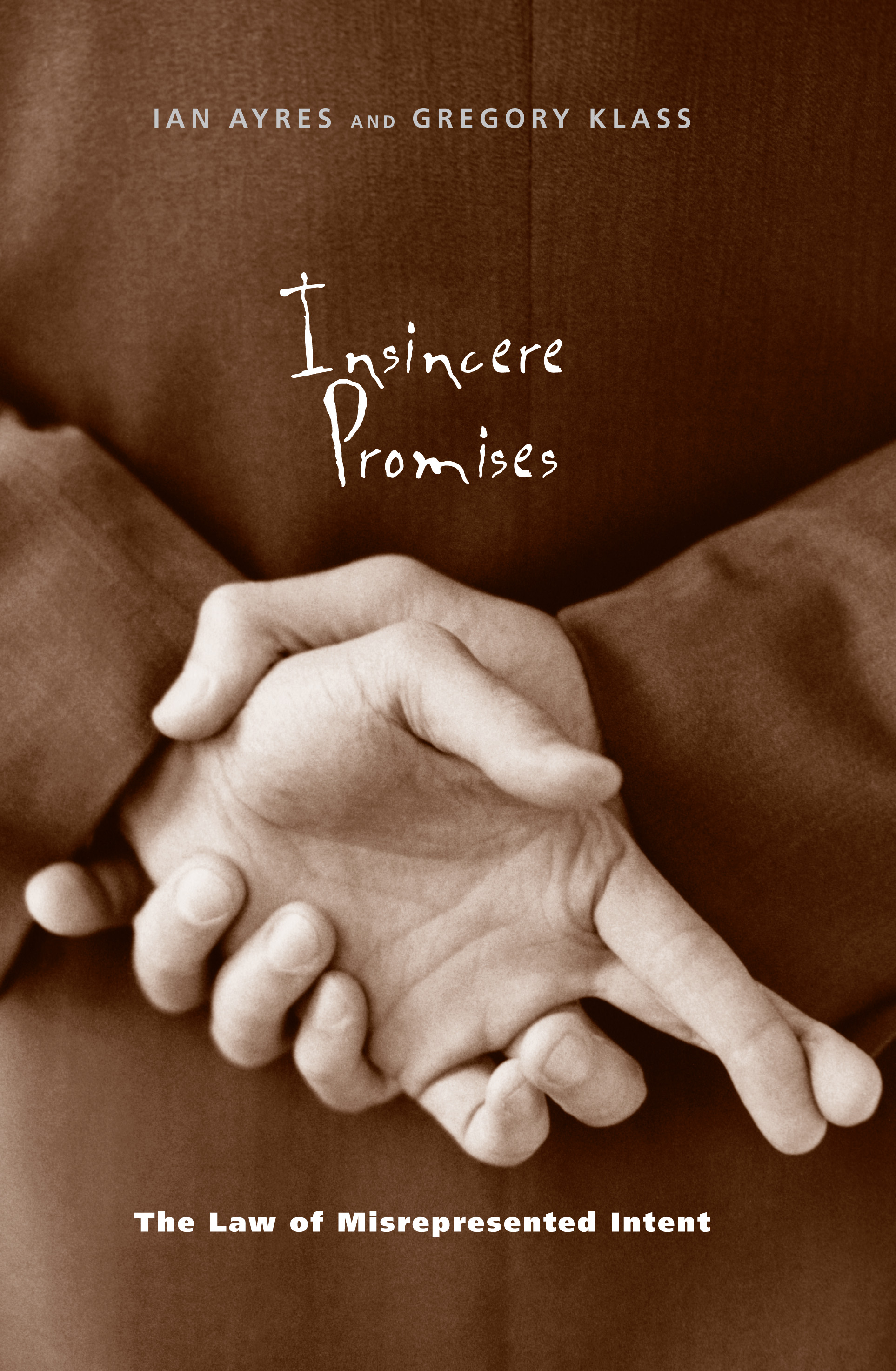 Greg Klass and I are trying to change this state of the world. Yale University Press has just published our book Insincere Promises: The Law of Misrepresented Intent.